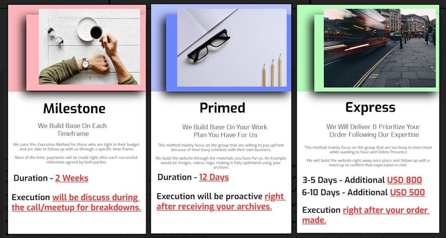We will build the website right away once place and follow up with a meet-up to confirm that expectation is met. Delivery can take as fast as 5-7 Days.